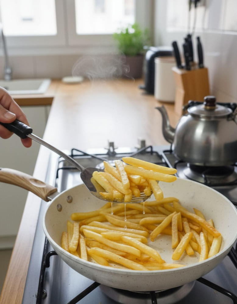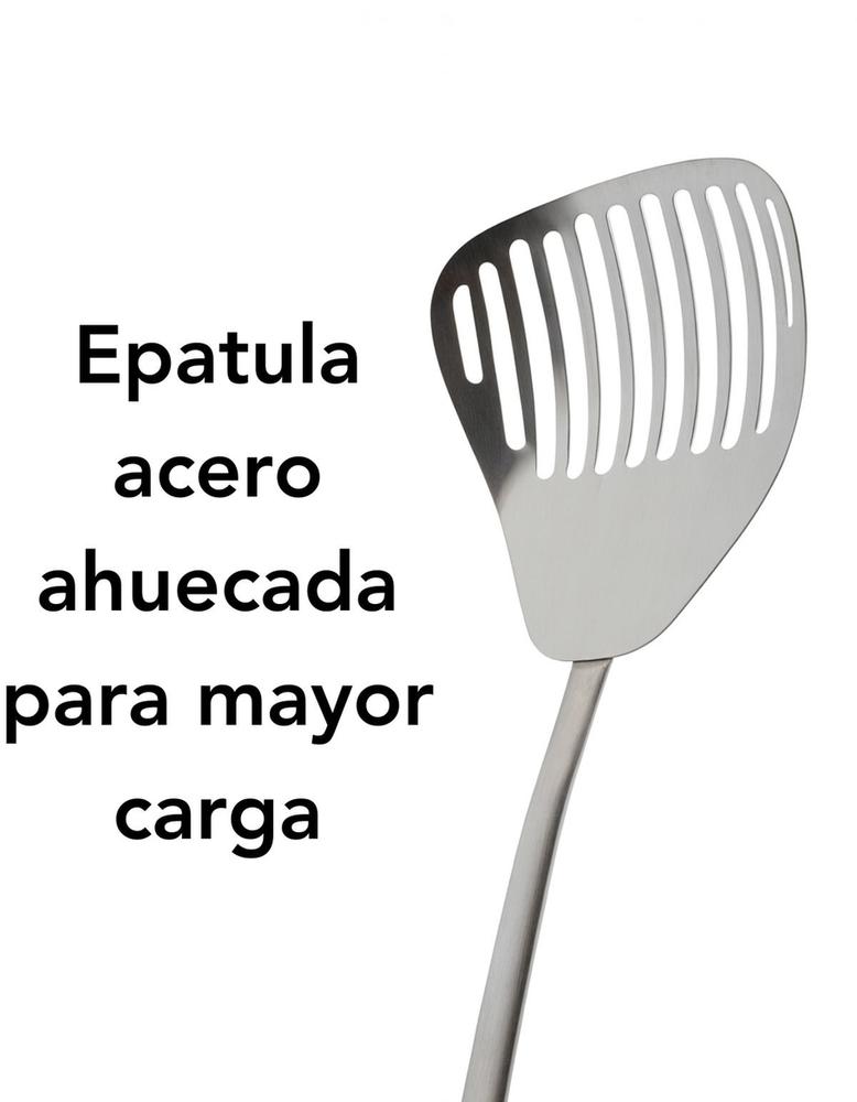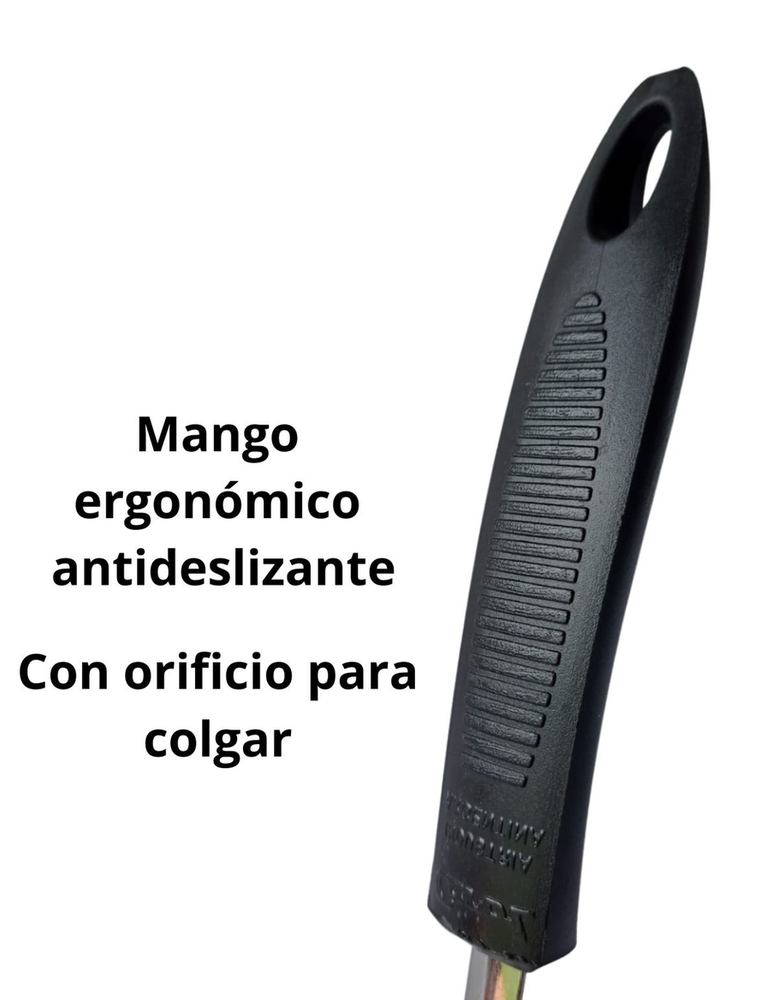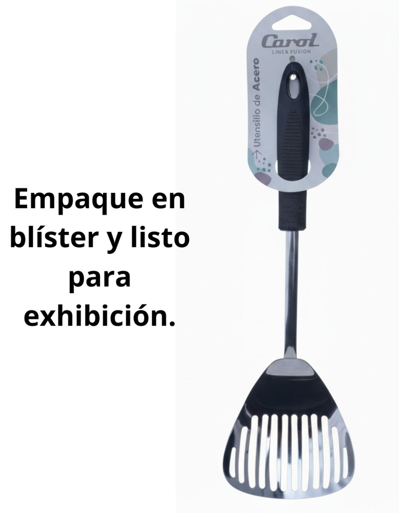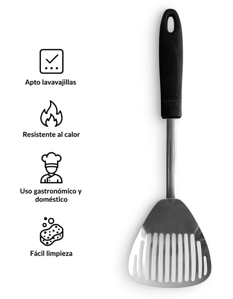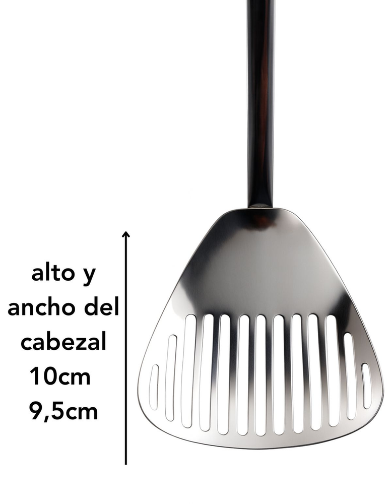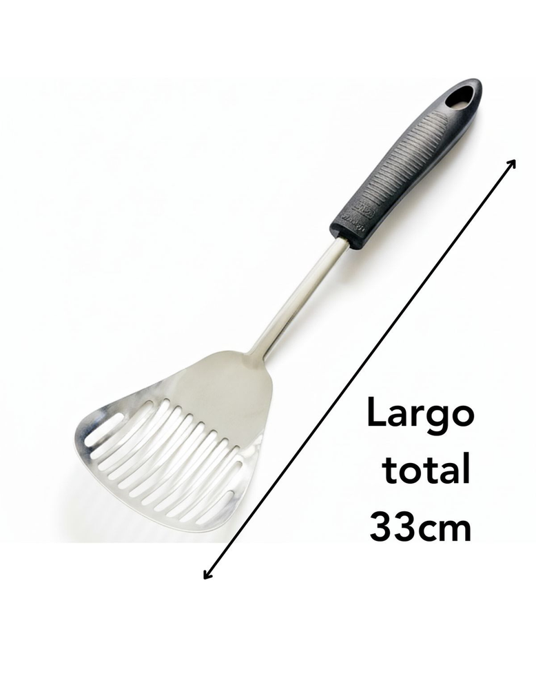 Práctica, resistente y diseñada para facilitar tus tareas en la cocina. Fabricada en acero inoxidable de alta calidad, su forma ahuecada y calada permite recoger una mayor cantidad de alimentos de una sola vez, dejando escurrir el exceso de aceite para un servicio más rápido y prolijo.