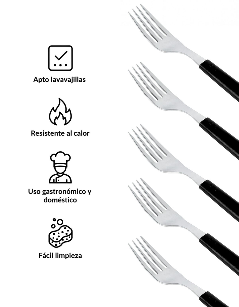 Tenedor resistente y funcional, ideal para el uso diario en el hogar, locales gastronómicos y comedores.